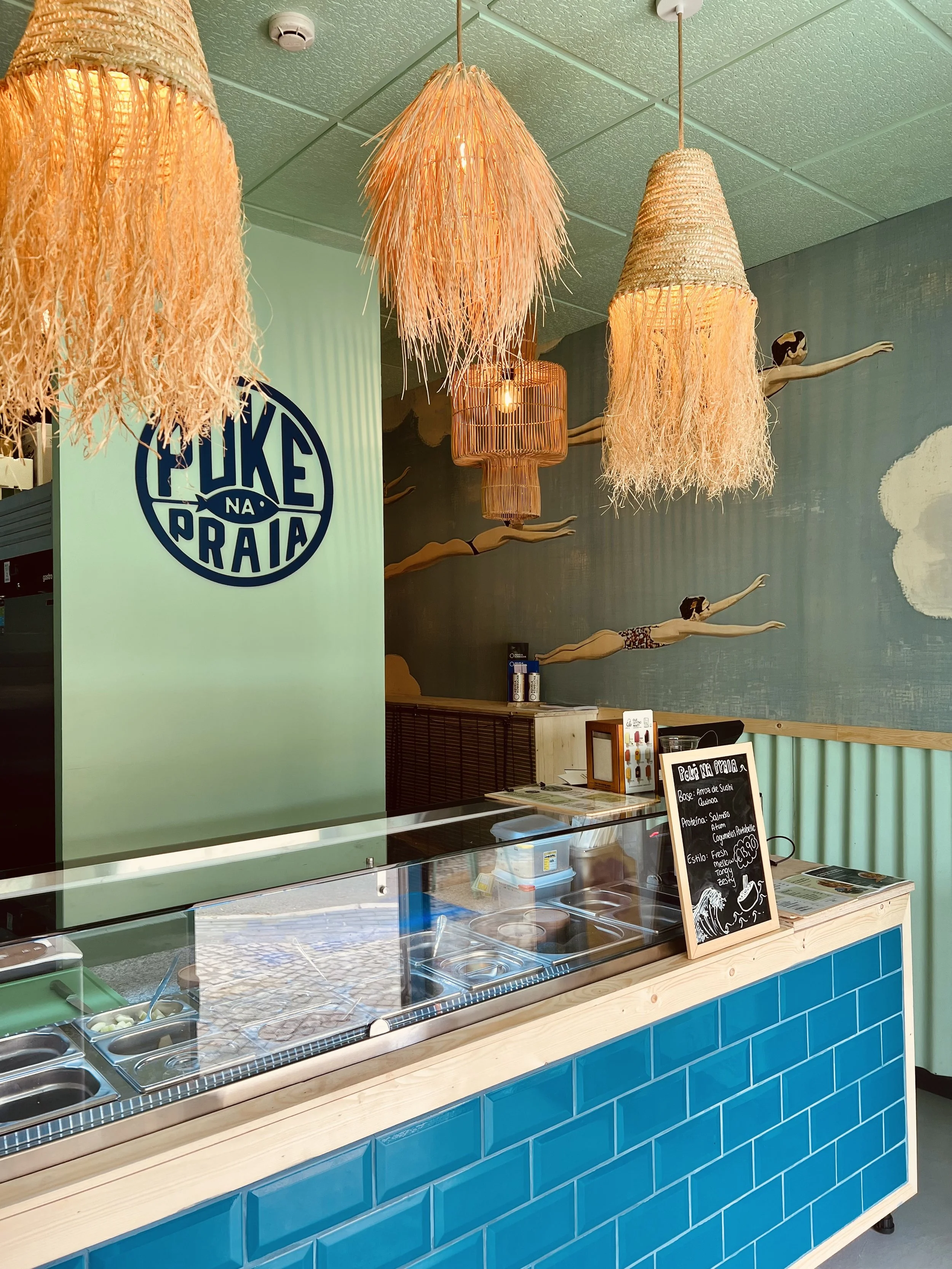Decoração de duas paredes do restaurante, com recurso à instalação de painéis acústicos e posterior decoração com elementos cerâmicos.
